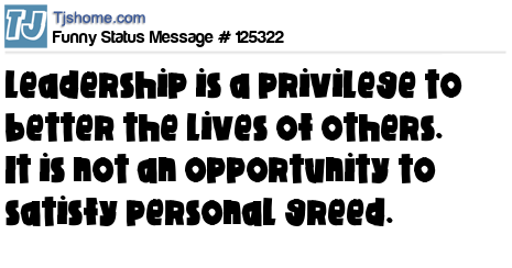 X Leadership is a privilege to better the lives of others. It is not an opportunity to satisfy personal greed.