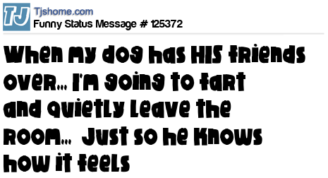 X When my dog has HIS friends over,,, I'm going to fart and quietly leave the room,,, Just so he knows how it feels