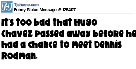 X says It's too bad that Hugo Chavez passed away before he had a chance to meet Dennis Rodman.