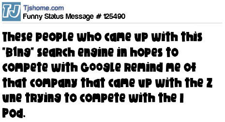 X is These people who came up with this "B1ng" search engine in hopes to compete with G00gle remind me of that company that came up with the Z une trying to compete with the I Pod.