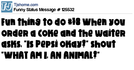 X says Fun thing to do #78 When you order a Coke and the waiter asks, "Is Pepsi okay?" shout "WHAT AM I, AN ANIMAL?"
