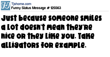 X says Just because someone smiles a lot doesn't mean they're nice or they like you. Take alligators for example.