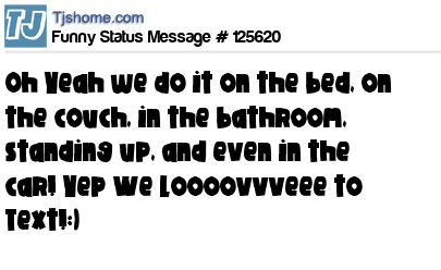 X is Oh Yeah we do it on the bed, on the couch, in the bathroom, standing up, and even in the car! Yep We Loooovvveee to Text!:)