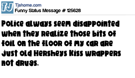 X is Police always seem disappointed when they realize those bits of foil on the floor of my car are just old Hersheys Kiss wrappers not drugs.
