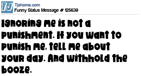X says Ignoring me is not a punishment. If you want to punish me, tell me about your day. And withhold the booze.