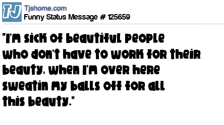 X is "I'm sick of beautiful people who don't have to work for their beauty, when I'm over here sweatin my balls off for all this beauty."