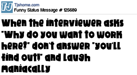 X says When the interviewer asks "Why do you want to work here?" don't answer "you'll find out!" and laugh maniacally