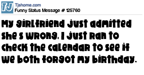 X says My girlfriend just admitted she’s wrong, I just ran to check the calendar to see if we both forgot my birthday.