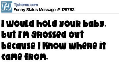 X says I would hold your baby, but I'm grossed out because I know where it came from.