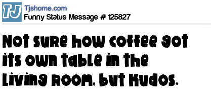 X says Not sure how coffee got its own table in the living room, but kudos.