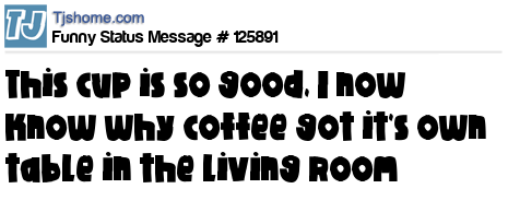 X is This cup is so good, I now know why coffee got it's own table in the living room