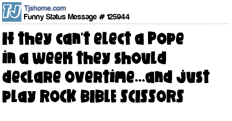 X If they can't elect a Pope in a week they should declare Overtime...and just play ROCK BIBLE SCISSORS