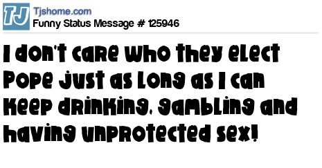 X is I don't care who they elect Pope just as long as I can keep drinking, gambling and having unprotected sex!
