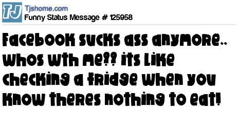 - # 144434 Facebook is like an empty fridge. You keep checking it even though you know nothing will be there.