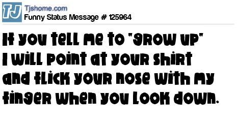 X says If you tell me to "grow up" I will point at your shirt and flick your nose with my finger when you look down.