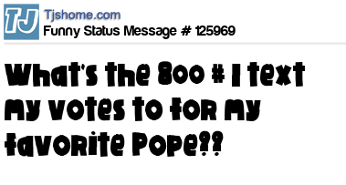 X says what's the 800 # I text my votes to for my favorite Pope??