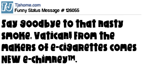 X says Say goodbye to that nasty smoke, Vatican! From the makers of e-cigarettes comes NEW e-chimney™.