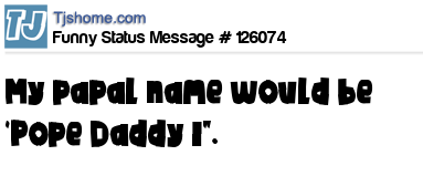 - # 125993 According to planned parenthood we have a new Pope! Welcome Pope Smear. I personally would have voted for Pope Awheelie..