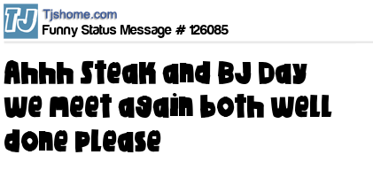 X says Ahhh Steak and BJ Day we meet again both well done please