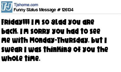 - # 132514 I’m just glad it’s almost Friday! It’s almost Friday, right? Well, it’s close to Friday. It’s never going to be Friday is it?