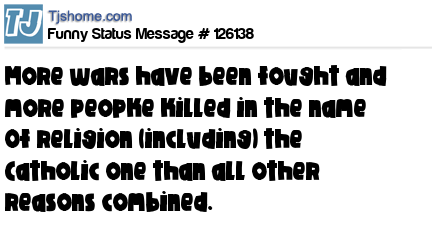 X is more wars have been fought and more peopke killed in the name Of religion (including) the Catholic one than all other reasons combined.