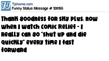 X is thank goodness for sky plus, now when I watch Comic Relief - I really can go "shut up and die quickly" every time I fast forward