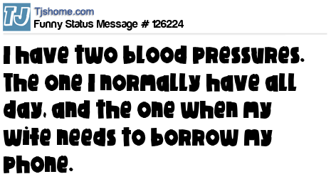 X says I have two blood pressures. The one I normally have all day, and the one when my wife needs to borrow my phone.