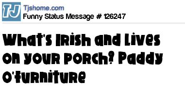 - # 98505 Paddy goes on a 1st aid course, the instructor asks him what would you do if your child swallowed the front door key? Paddy said i'd climb through the window.