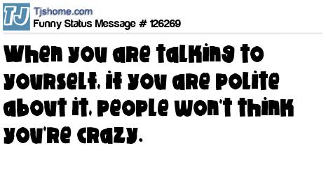 X When you are talking to yourself, if you are polite about it, people won't think you're crazy.