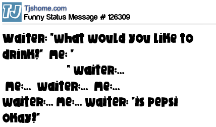 X waiter: "what would you like to drink?" me: "тнє вℓσσ∂ σƒ му єηємιєѕ" waiter:... me:... waiter:... me:... waiter:... me:... waiter: "is pepsi okay?"