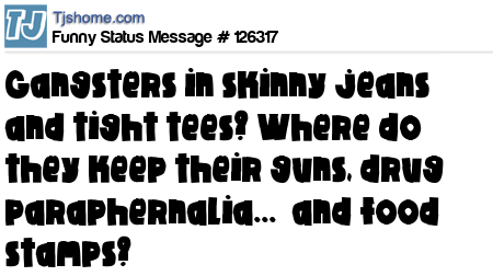 X says Gangsters in skinny jeans and tight tees? Where do they keep their guns, drug paraphernalia... and food stamps?