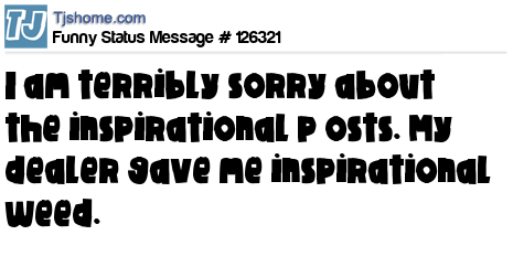 X says I am terribly sorry about the inspirational p osts. My dealer gave me inspirational weed.