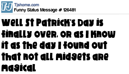 X says Well St Patrick's Day is finally over, or as I know it as the day I found out that not all midgets are magical