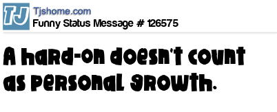 - # 74531 hey guys!!!!!! A hard-on doesn't count as personal growth.