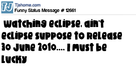 X is watching eclipse, ain't eclipse suppose to release 30 June 2010.... I must be lucky