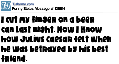 X is I cut my finger on a beer can last night. Now I know how Julius Caesar felt when he was betrayed by his best friend.