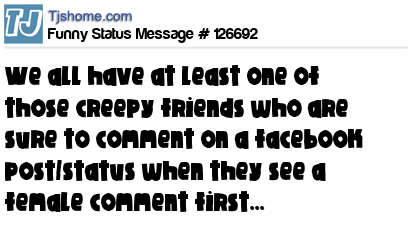 - # 185009 We all have at least one of those creepy friends who are sure to comment on a Facebook post/status when they see a female comment first