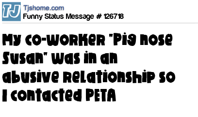 X says My co-worker "Pig nose Susan" was in an abusive relationship so I contacted PETA