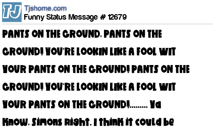 X says PANTS ON THE GROUND, PANTS ON THE GROUND! YOU'RE LOOKIN LIKE A FOOL WIT YOUR PANTS ON THE GROUND! PANTS ON THE GROUND! YOU'RE LOOKIN LIKE A FOOL WIT YOUR PANTS ON THE GROUND!......... Ya know, Simons right. I think it could be a hit.