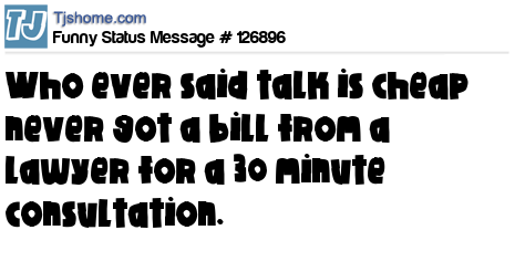 X says Who ever said talk is cheap never got a bill from a lawyer for a 30 minute consultation.
