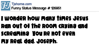 X says I wonder how many times Jesus ran out of the room crying and screaming “You’re not even my real dad, Joseph.”