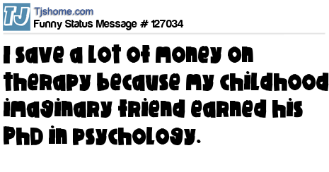 X says I save a lot of money on therapy because my childhood imaginary friend earned his PhD in psychology.