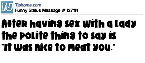 X After having sex with a lady the polite thing to say is "It was nice to meat you."