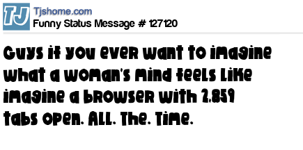 - # 159213 Note to men, if you really want to understand how a woman's mind works - imagine a browser with 2687 tabs open.