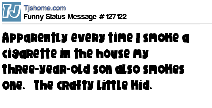 X is Apparently every time I smoke a cigarette in the house my three-year-old son also smokes one. The crafty little kid.