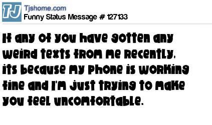 X is If any of you have gotten any weird texts from me recently, its because my phone is working fine and I'm just trying to make you feel uncomfortable.