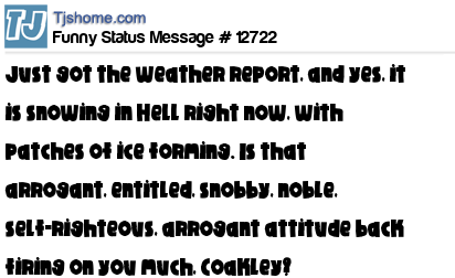 X just got the weather report, and yes, it is snowing in Hell right now, with patches of ice forming. Is that arrogant, entitled, snobby, noble, self-righteous, arrogant attitude back firing on you much, Coakley?