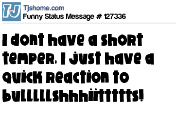- # 77317 I don't have a short temper; I just have a quick reaction to bullsh!t.
