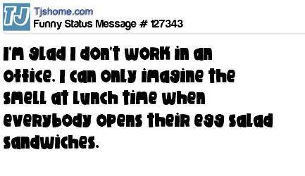 X I'm glad I don't work in an office. I can only imagine the smell at lunch time when everybody opens their egg salad sandwiches.