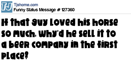 X is If that guy loved his horse so much, why'd he sell it to a beer company in the first place?